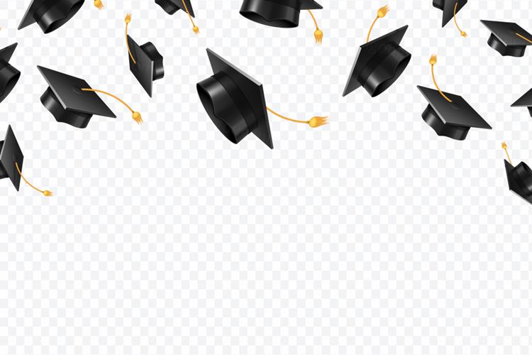 高质量毕业帽博士帽五彩纸屑漂浮装饰设计元素EPS矢量素材