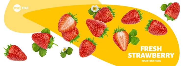 图穷联素材库 » 新鲜夏季水果草莓PSD分层设计素材