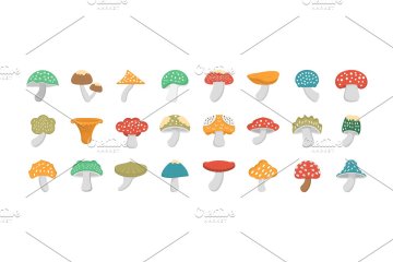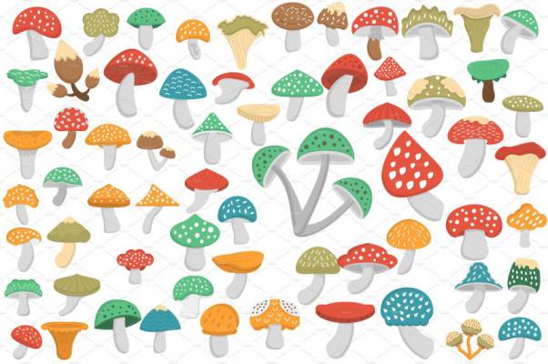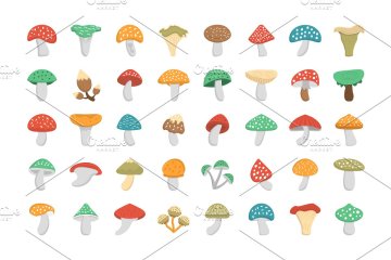 蘑菇元素简笔画图标下载 60 Mushroom Flat Icons