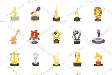 图穷联素材库 » 50个音乐奖小雕像图标设计 50 Music Award Statuette V