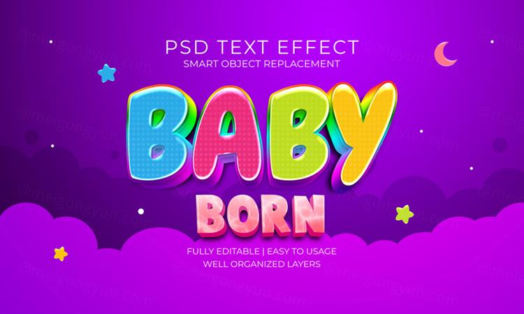图穷联素材库 » 婴儿可爱卡通糖果色主题字3D文字智能可编辑立体字体特效文本样