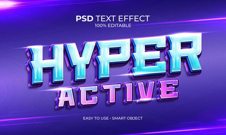 赛博朋克创意3D海报标题文字智能可编辑立体字体特效文本样式P