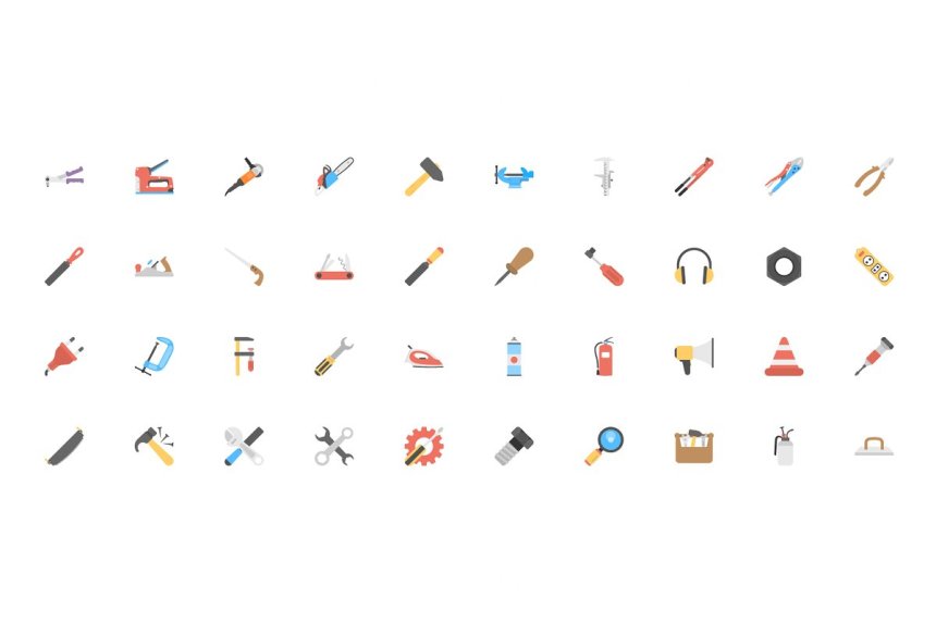图穷联素材库 » 工具图标素材 110 Tool Flat Vector Icons