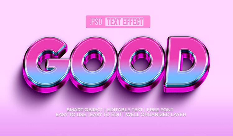 高质量粉色金属质感海报主题字立体字文字特效PSD智能对象模板