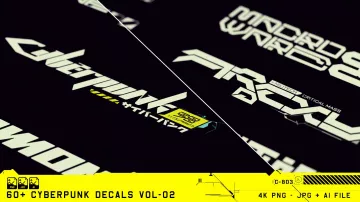 超过 60 种高分辨率时尚赛博朋克贴花和科技线,让您的赛博朋克味蕾充满流口水。