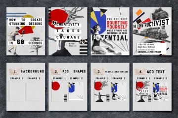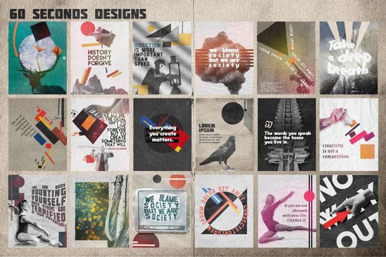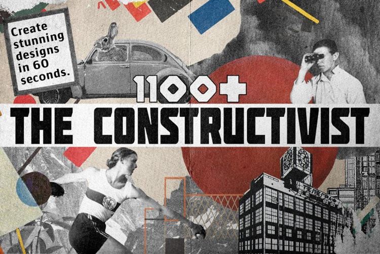 图穷联素材库 » 1100+复古粗野艺术苏联时期建构主义剪贴画做旧纸张纹理合辑