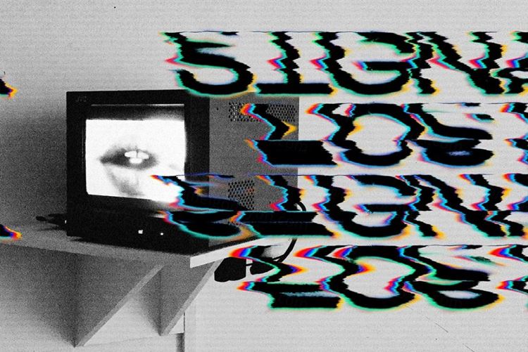 复古未来派信号错位失真扫描线文字特效PSD模板素材 Shut