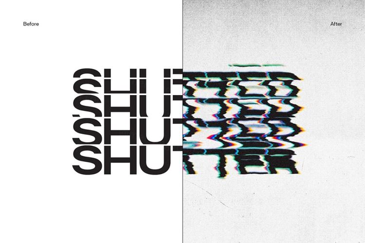 图穷联素材库 » 复古未来派信号错位失真扫描线文字特效PSD模板素材 Shut