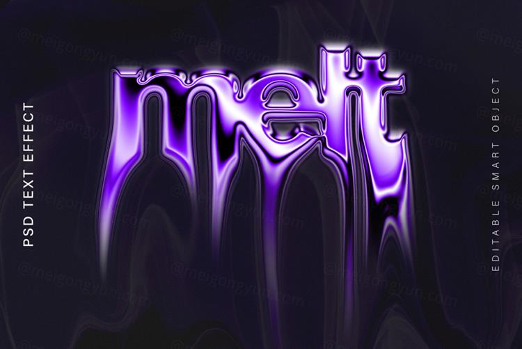 图穷联素材库 » 高质量迷幻紫色金属融化字体特效一键生成PSD模板素材 Met