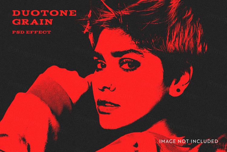 图穷联素材库 » 潮流复古双色调颗粒感图片特效处理滤镜PS置换模板素材 Duo