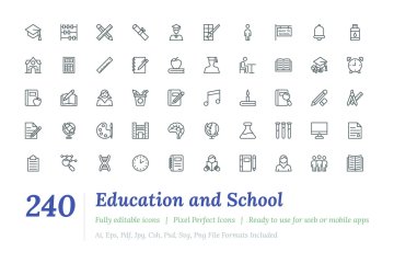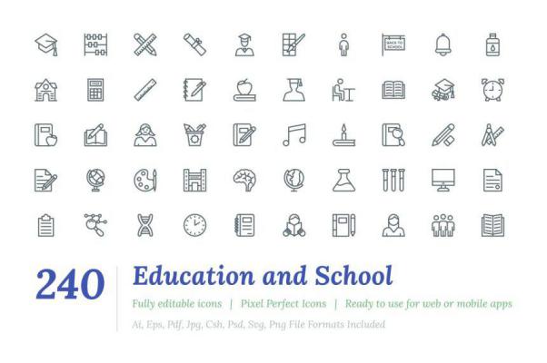 图穷联素材库 » 教育线型矢量图标 240 Education and School Line I