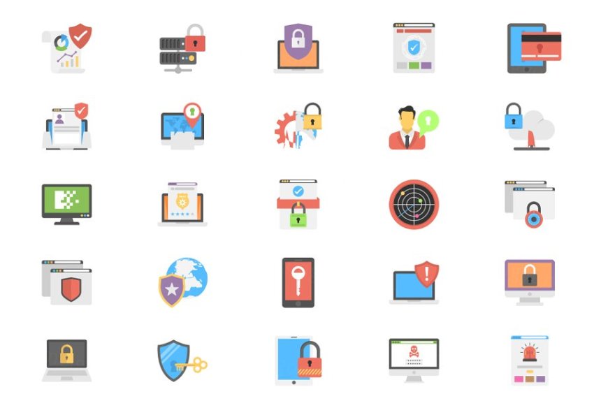 图穷联素材库 » 网络安全矢量图标 100 Flat Internet Security Icon