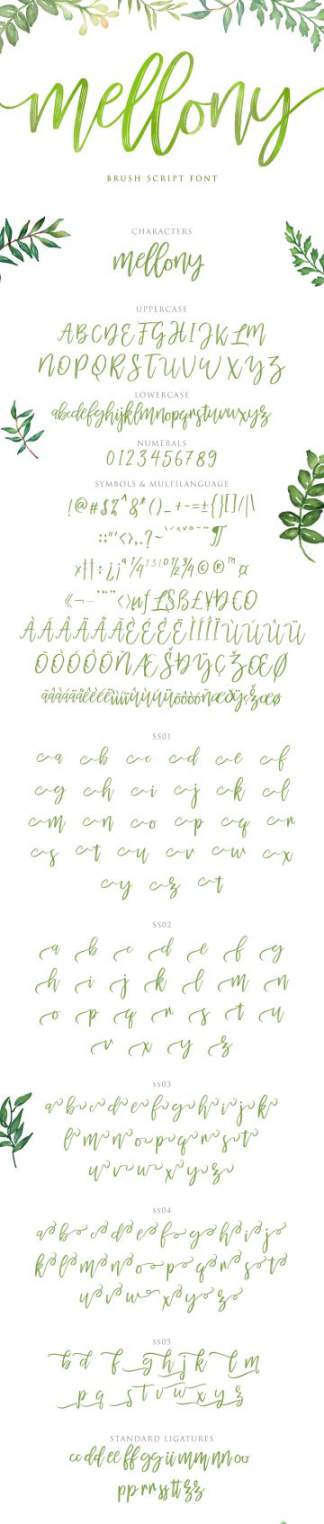 图穷联素材库 » 手绘笔刷字体 Mellony brush script font