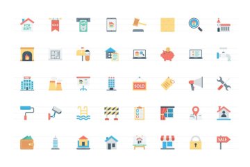 资产房产矢量图标素材 128 Flat Real Estate Icons