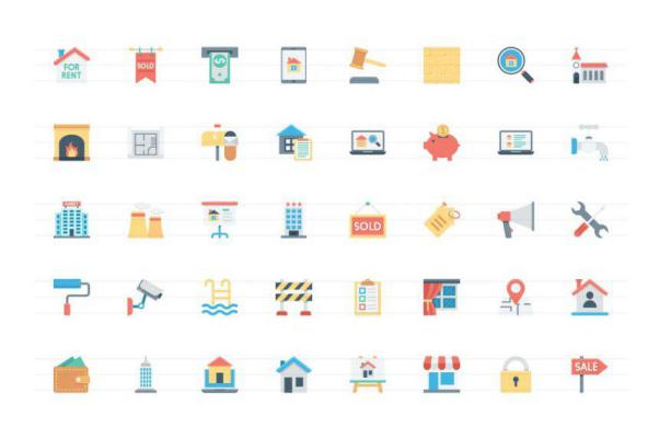 图穷联素材库 » 资产房产矢量图标素材 128 Flat Real Estate Icons