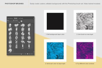 Photoshop 画笔是一种将纹理带入您的设计或创建自定义抽象背景的快速简便的方法。它们还允许您创建自定义颜色组合,以便您可以轻松地将抽象油漆背景与品牌颜色相匹配。(包括有关此的视频教程。)