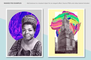 6 个示例 PSD,展示了如何使用带有蒙版照片的纹理来创建充满活力的现代设计