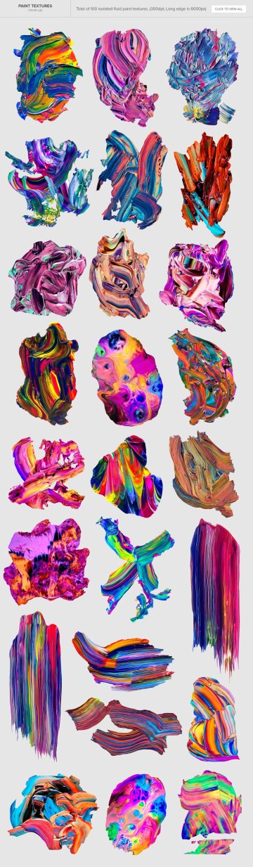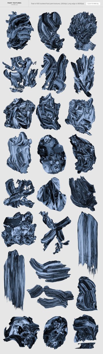 100 种油漆纹理(25 种颜色、25 种黑白、25 种火和 25 种铬)