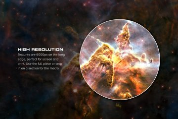 使用这些纹理将空间的奇妙和敬畏带入您的下一个项目。所有纹理均基于来自 NASA 的公共领域空间图像,这些图像经过精心处理和重新着色。它们适用于各种项目,如包装设计、每日海报项目、专辑封面等。由于这些资源具有超高分辨率,因此它们在印刷或网络图形中表现出色。在华丽的宏观细节上使用完整的作品或裁剪。
