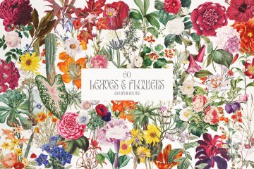 60 片叶子和花朵,PNG 3500 - 5000 像素
