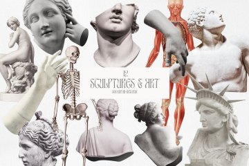 PNG 3500 - 5000 像素的 12 件雕塑和插图