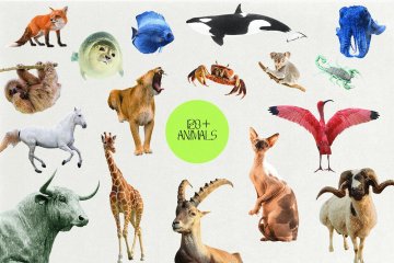 动物(熊、鸟、臭虫、公牛、蝴蝶、骆驼、海山羊、猫、牛、螃蟹、鹿、狗、海豚、鸭、鱼、狐狸、青蛙、长颈鹿、山羊、马、考拉、狮子、猴子、老鼠, 章鱼, 猫头鹰, 企鹅, 兔子, 公羊, 蝎子, 海豹, 树懒, 海星, 老虎, 海龟, 鲸鱼, 斑马)