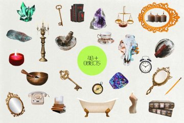 物品(浴缸、书籍、蜡烛、水晶、镜子、钥匙、杯子、框架、指南针、时钟、电话、头骨等)