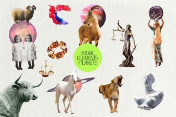 图穷联素材库 » 新复古潮流蒸汽波占星术报纸杂志剪贴画PNG装饰元素合辑 As