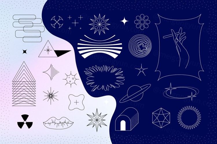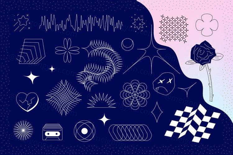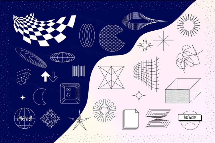 图穷联素材库 » 高品质复古未来主义超时尚Y2K抽象矢量形状图形素材合集包 M