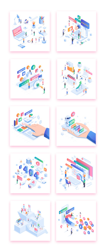 图穷联素材库 » 高质量现代商业主题等距插画素材 Modern Isometr