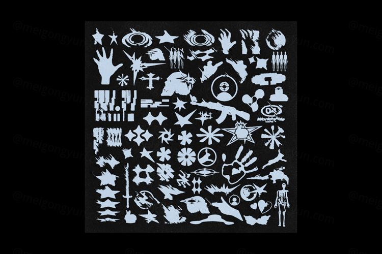 图穷联素材库 » 潮流Y2K末日战争废土风肮脏邋遢斑图标插图合集包 GRUNG