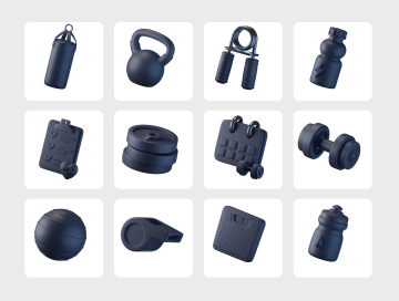 图穷联素材库 » 高质量三维渲染健身房健身器材3D插画图标素材合辑 Fitne
