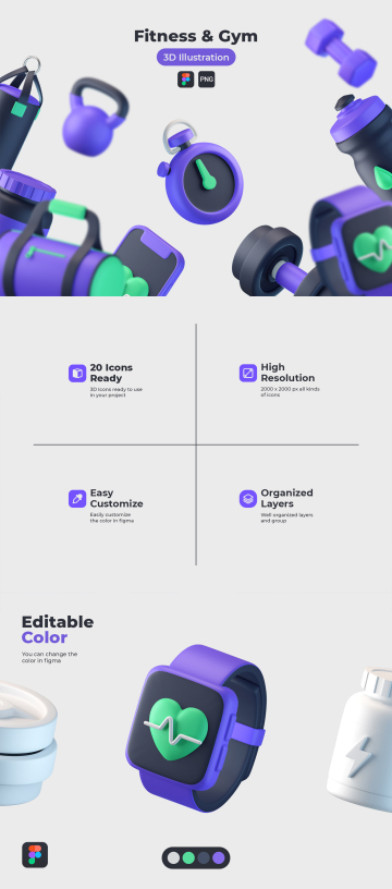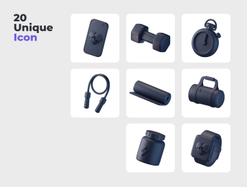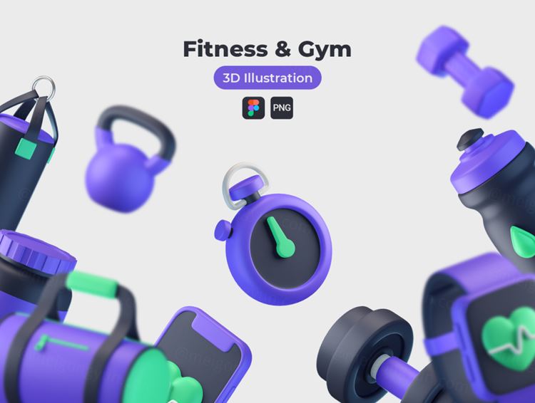 高质量三维渲染健身房健身器材3D插画图标素材合辑 Fitne