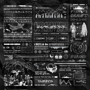 复古未来派酸性艺术赛博朋克机能HUD科技元素嘻哈潮牌抽象图形