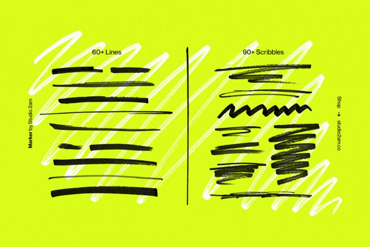 Marker 充满了大量的视觉灵感,包括各种各样的永久性标记线、涂鸦、字母、形状等等!拿起这包超高分辨率涂鸦,开始您的下一个项目,让您的创造力尽情发挥。