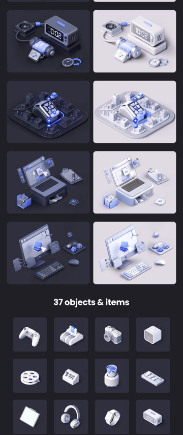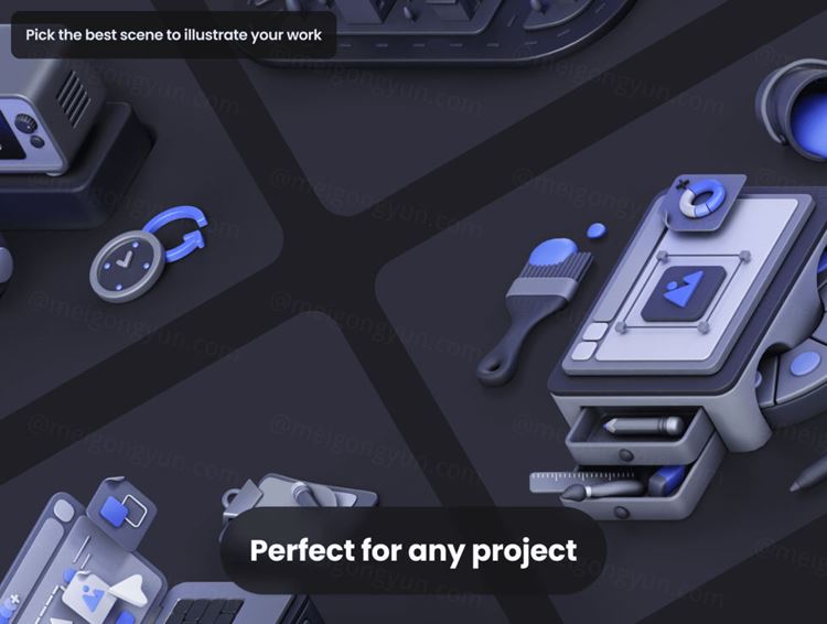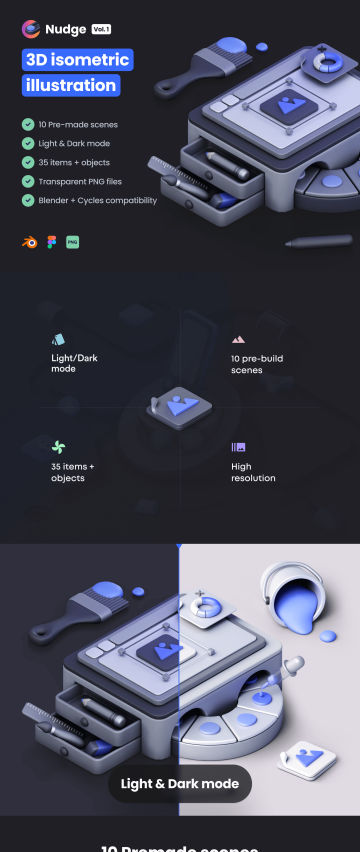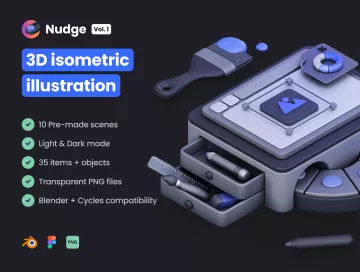图穷联素材库 » 高质量2.5D等距风数码游戏概念3D插画图标素材 Nudge