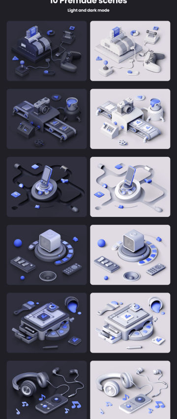 这个很棒的包包括 10 个明暗模式的预制场景。