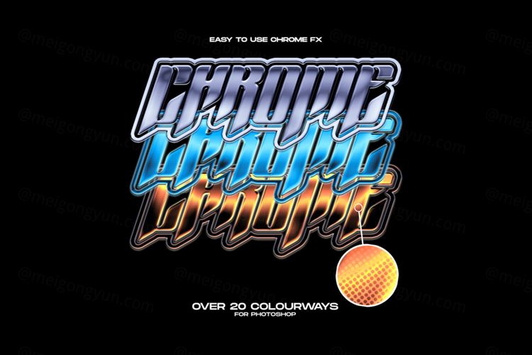图穷联素材库 » 复古Y2K千禧风镀铬金属立体字PSD模板素材 CHROME