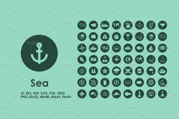图穷联素材库 » 海洋元素矢量图标 Sea icons