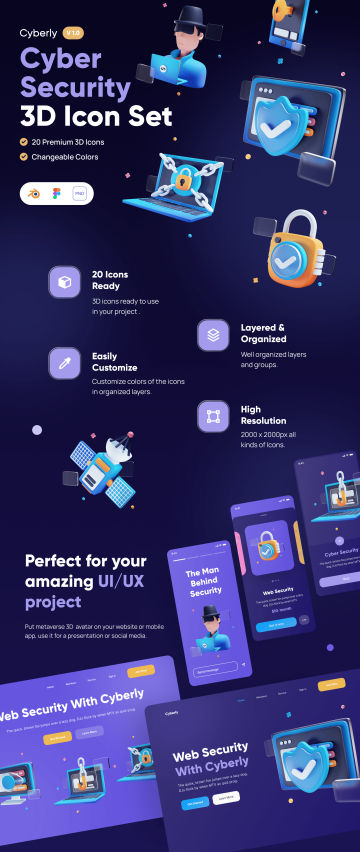 Cyberly 是一组适用于任何网络安全领域的自定义 3D 图标。使用 3D 图标让您的下一个产品和项目更加精彩。