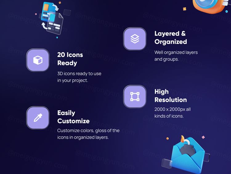 - 20 个高级可定制 3D 图标