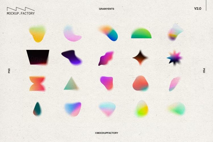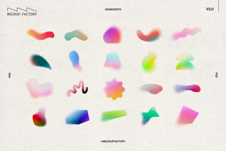 期待已久的Grainyents Volume 2终于来了!现在有 100 种渐变、60 种完全可定制的模糊形状、3 级颗粒和巨大的 4000x3000 分辨率。这个形状集合可以以无限的方式进行定制,高分辨率意味着它可以用于印刷和数字,从海报到网站和应用程序。
