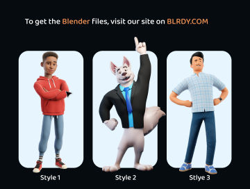 高质量Blender三维渲染卡通人物形象姿势库3D插画素材