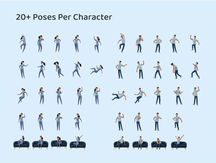 图穷联素材库 » 高质量Blender三维渲染卡通人物形象姿势库3D插画素材