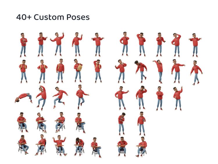 图穷联素材库 » 高质量Blender三维渲染男同学生返校卡通人物形象姿势库3