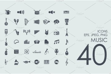 图穷联素材库 » 音乐矢量图标 40 music icons