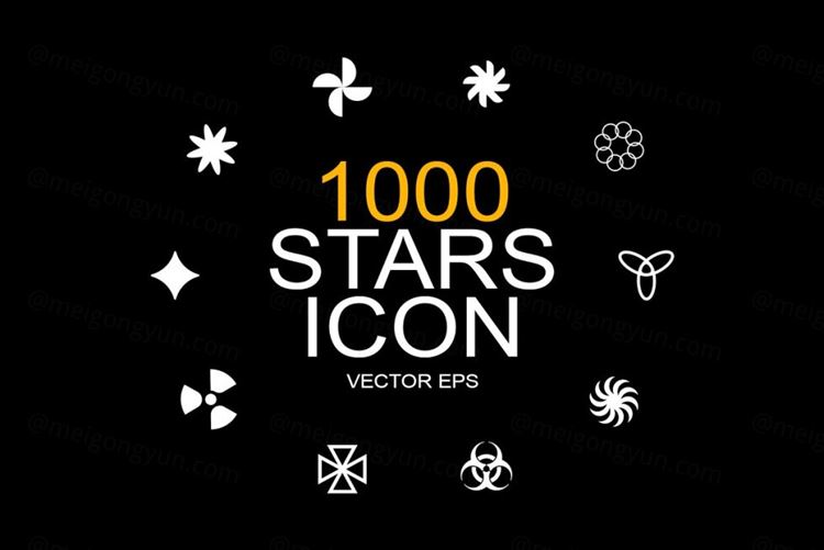 图穷联素材库 » 1000颗不同设计风格的星星形状插画图标设计装饰素材 Sta