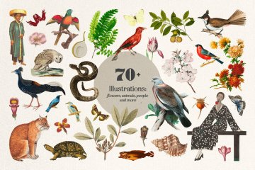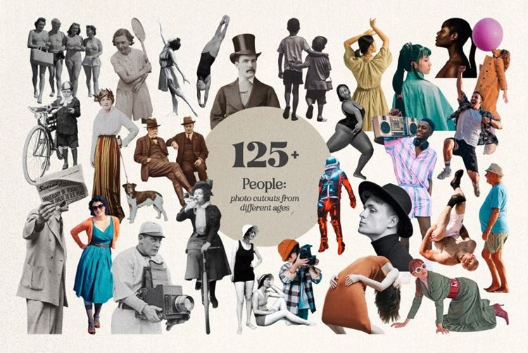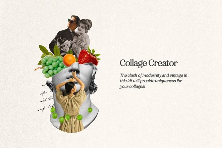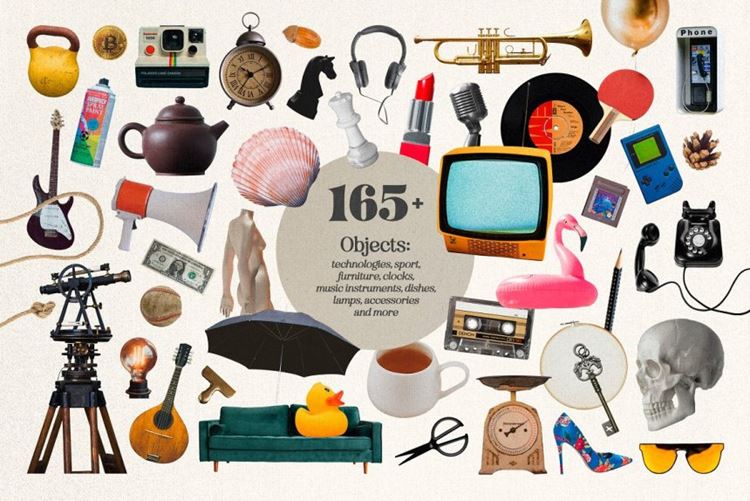 最极端的想法不应该被压制,而应该引起关注,因为它们很有可能成为另一个突破。你很幸运,因为有了这个精心设计和组织的1255 个拼贴元素的集合,可以很容易地通过各种交付的对象来展示各种概念。包含的材料包括身体部位、动物、植物、物体、建筑和雕像、交通工具、食物、插图、自然和文具元素. 离奇的故事、书籍封面、个性化的邀请函、室内海报、快乐的时事通讯、鼓舞人心的情绪板——说出任何任务,它肯定会以最好的方式应对它。要完成真实的拼贴画,请使用背景或纸张纹理对其进行抛光,从而为整体场景印象做出贡献。这是所有包含组的列表。