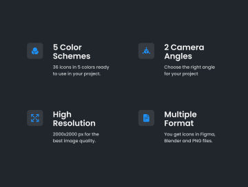 在我们的包中,您会发现 2 个不同角度的 36 个独特图标。
