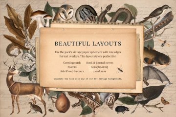 图穷联素材库 » 复古拼贴艺术大自然植物动物纸张做旧纹理素材合辑 Vintag